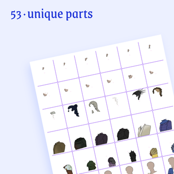 A set of 2d assets that you can combine to generate unique characters for a game dialogue screen. This kit contains layers of head parts that you have to stack on top of one another to get the final result.